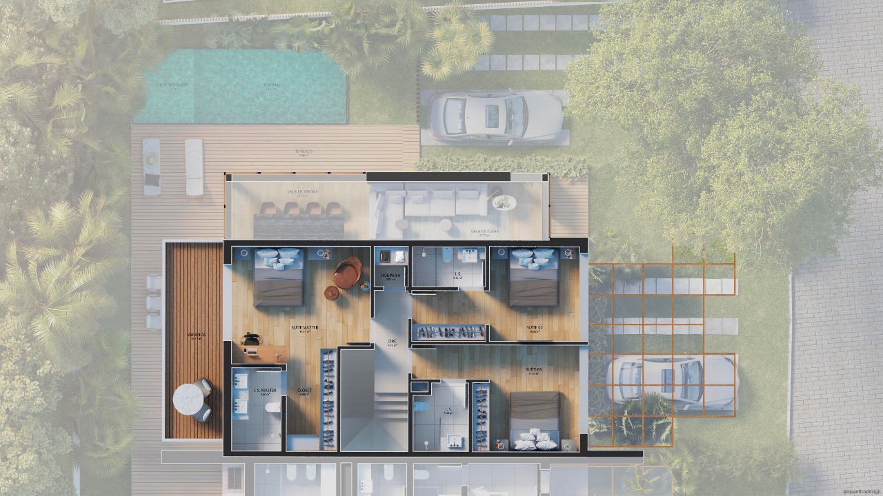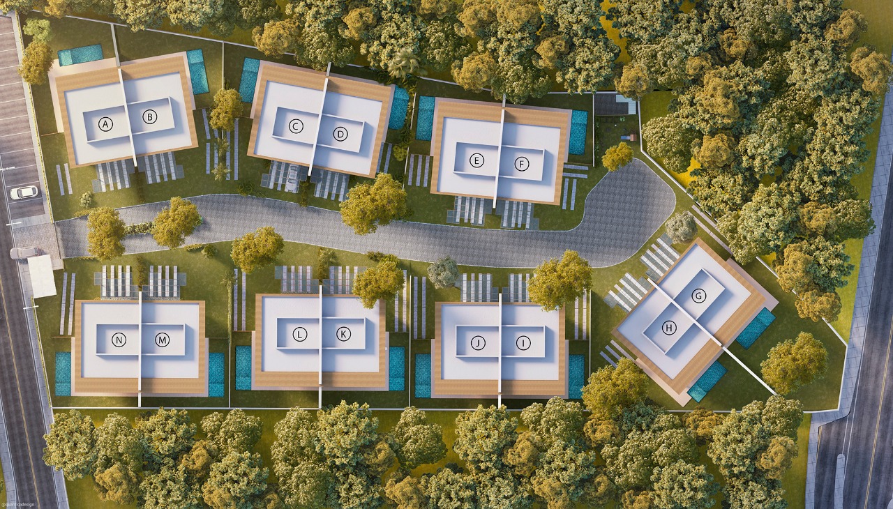 Captação da água pluvial para reuso da rega dos jardins do condomínio.